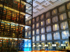 Se encuentra situada en el corazón del campus de la Universidad de Yale, en New Haven, Connecticut, siendo uno de los pocos edificios modernos del mismo, pues el estilo predominante es el Gótico. Esta “biblioteca de libros raros y manuscritos” es una de las más grandes de este tipo en el mundo (26m x 40m x 17.5m como medidas aproximadas).