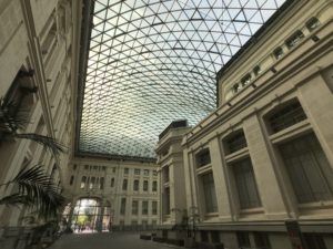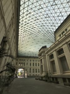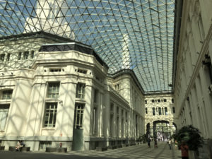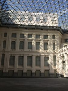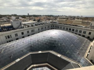 Esta gran cubierta, construida entre los años 2008 y 2009, es una malla triangular de casi 3000 m2 y 500 toneladas de peso, que se apoya sobre los edificios existentes, introduciendo sin embargo los menores esfuerzos posibles gracias a la técnica de introducir cables horizontales y una gran viga perimetral. Con un vano máximo de 45 m, está entre los records de cubiertas de vidrio de una sola capa de este estilo.