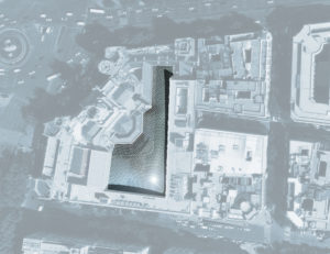 Por ello, para encontrar la forma más adecuada, ingenieros y arquitectos analizaron las dos opciones para este proyecto. El principal condicionante fue el conjunto de edificios antiguos que formaban el perímetro de la nueva cubierta. A lo largo de este perímetro se debía disponer una viga de borde horizontal para controlar las fuerzas transmitidas a la estructura existente, y esto provocó un diseño de la superficie mediante elementos triangulados, más fácil de definir con bordes rectos.