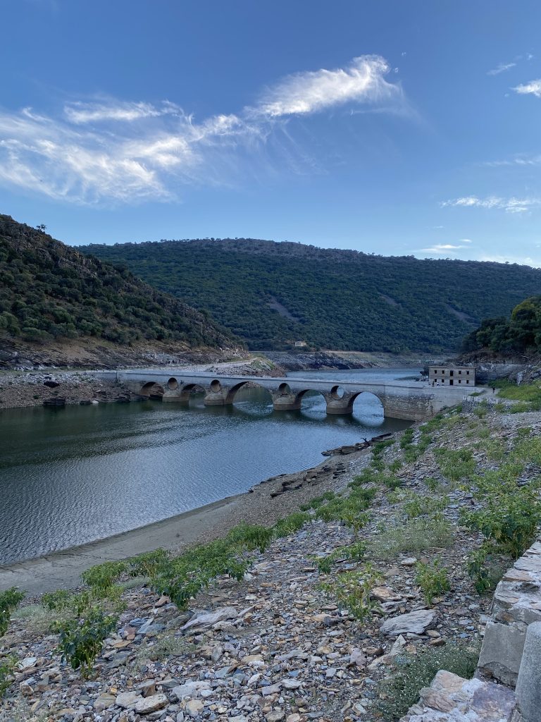 Pretiles caídos y vista hacia aguas abajo