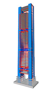 - The two lateral cores, which extend over the entire height of the building, joined at the top by a horizontal element.