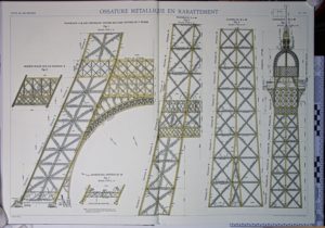 There are complex calculations and different theories trying to explain how this structure was designed. Some of them say the shape follows an exponential law, some others that it is an isoresistant profile (lower sections are bigger so stresses keep the same all over the height); actually, the explanation is given by Eiffel at the 27 pages document previously mentioned: “Projet d’une tour en fer de 300 mètres de hauteur destinée a l’Exposition de 1889” signed “Par G. Eiffel”. Even though it doesn´t have the final design of the Tower, the main shape is defined.