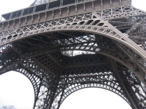 That’s why Eiffel describes the Tower as four big legs without any kind of bracing between them, but joined by horizontal separated belts which transmit the forces: “the skeleton is composed out of four legs which form the edges of a pyramid with curved faces; each leg has a square section which is smaller the higher it is. The distance between the bases of each of them is 100 m from axe to axe”. This distance guaranties stability.