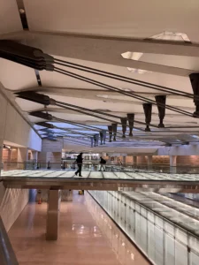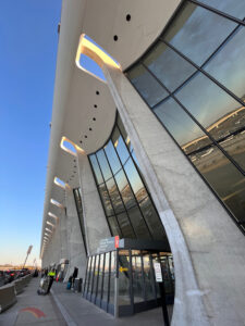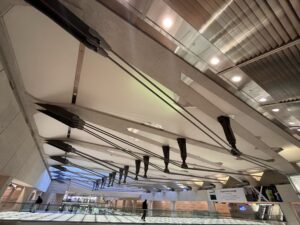 To respect Saarinen’s original building, they designed the new station underground, with skylights. See how the cable beams show the pure tension work.