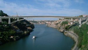 The Prince Don Henrique Bridge, or Ponte do Infante in Portuguese, spans the Duero River connecting the Portuguese cities of Porto and Vila Nueva de Gaia, respectively north and south of the Duero. Located in the coastal northwest of Portugal, Porto is sometimes referred to as the city of six bridges. The monumentality of Porto’s signature bridges is often enjoyed and best comprehended via Duero riverboats.