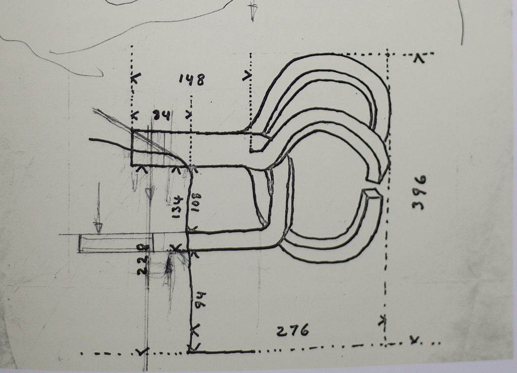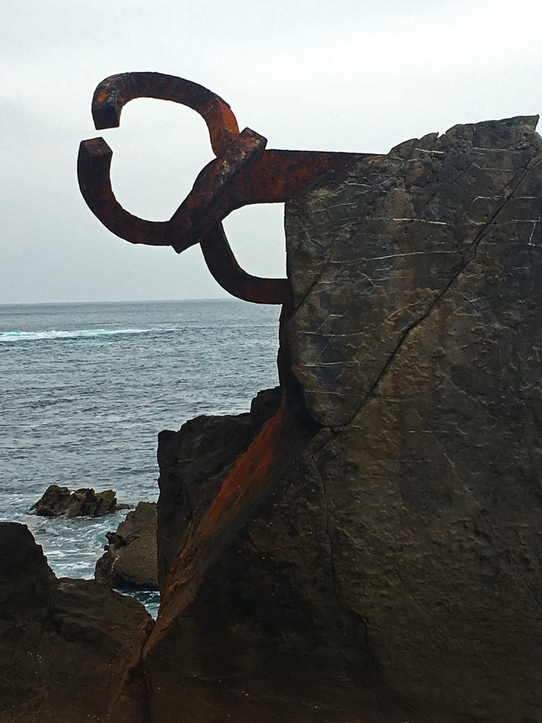 The design of the sculptures changed over time. In the beginning, there was going to be just one art piece, placed in a vertical position (that´s why it’s called the Comb, which is a singular name). The design evolved to the three we see, as number 3 had a special meaning for Chillida. After some tests with prototypes, the horizontal disposition (cantilevering) for the one on the coast, to the left, was decided. This was not easy to hold. José María Elósegui proposed to extend the lower arm deeper into the rock.
